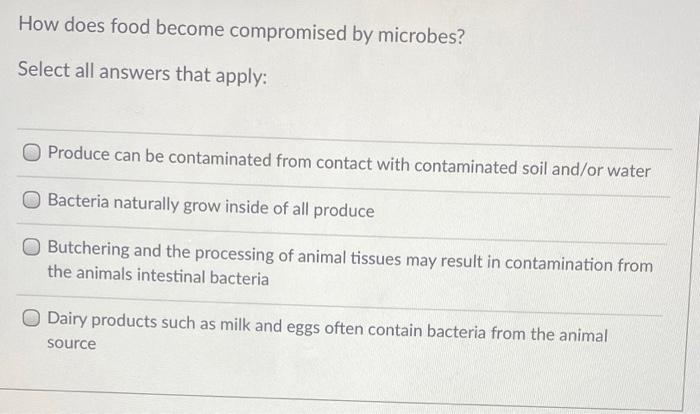 Solved How Does Food Become Compromised By Microbes Select Chegg Com